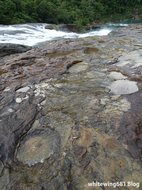 | 丸い穴がたくさん 長い年月をかけ水流と小石が穴を大きくしてきたと思われる |